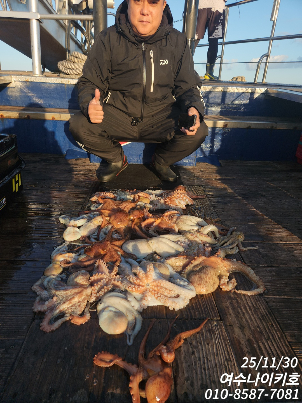 | 제목 : <여수청홍낚시>11월30일 주말 여수 문어낚시 조황 소식 입니다.(나이키호 조황 입니다/이번주 토,일 문어 자리 여유) | ||